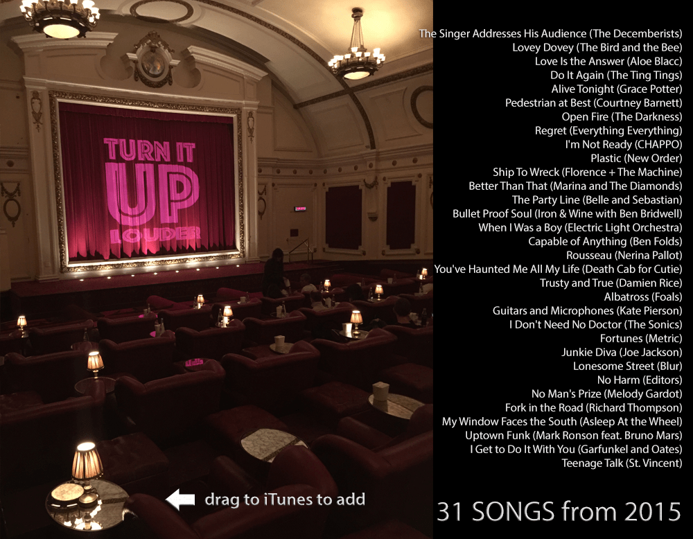 2015 energies were focused on my first, feature-length music documentary Turn It Up Louder. Happily the world did not come to a halt while I was holed up in the editing suite. This year brought a bounty of new and exciting albums that I enjoyed while cutting the movie.